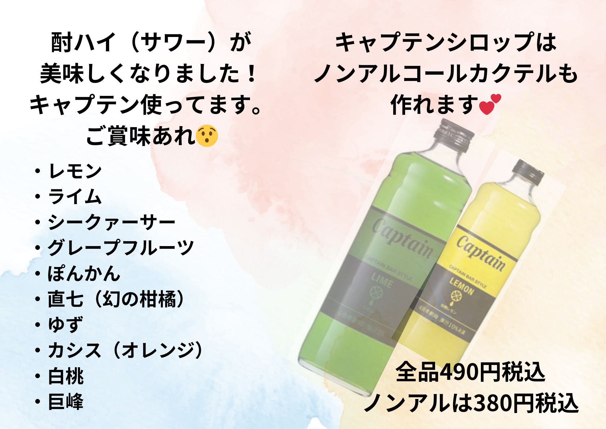 チューハイ(サワー)が新しくキャプテンシロップに変わり、さらに美味しくなりました。